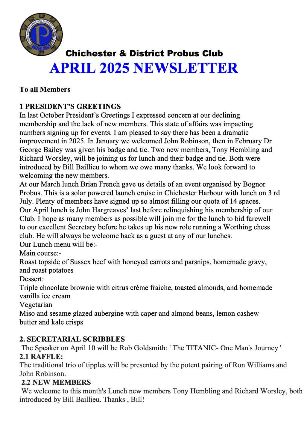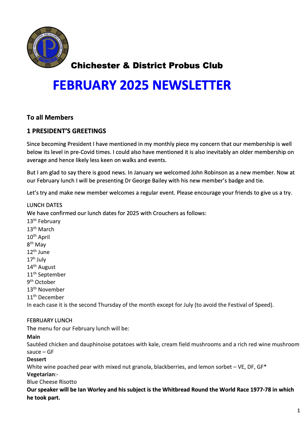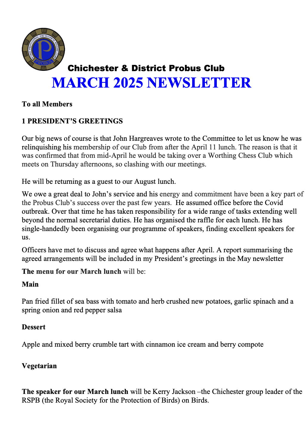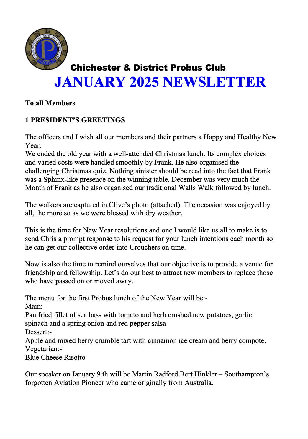 Forthcoming Speakers and Newsletters: